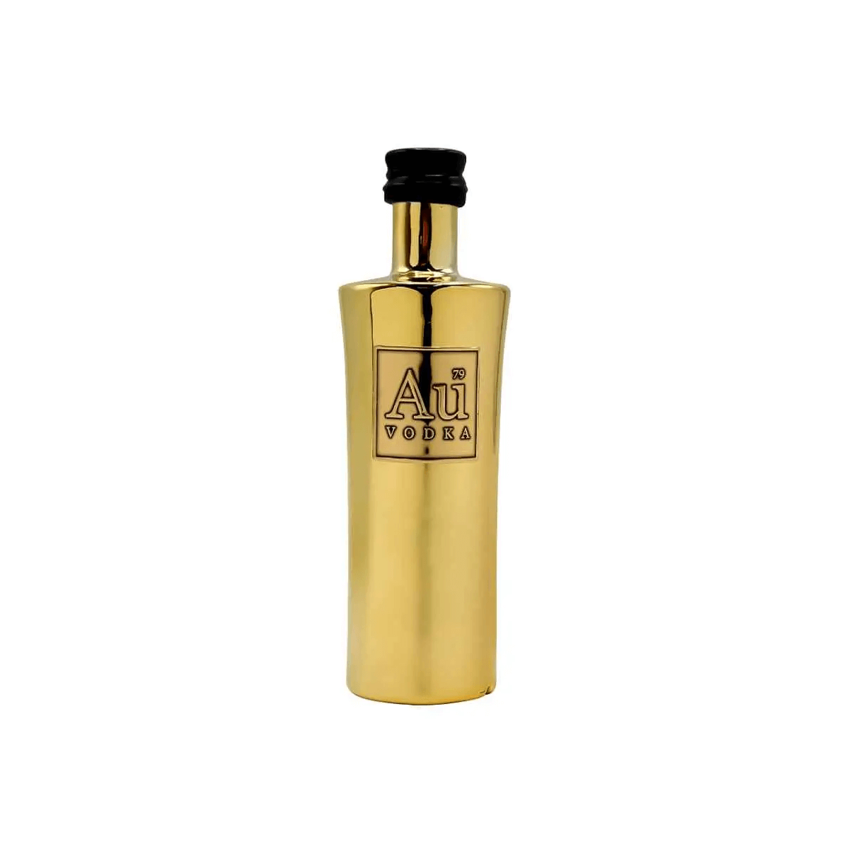 Få en flot miniatureudgave af den eksklusive AU Vodka. En gylden miniature fyldt med prisvindende og guldfiltreret premium vodka. En virkelig flot miniatureflaske!